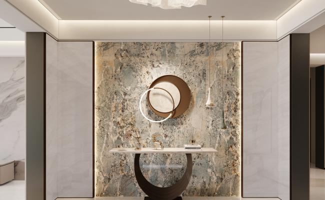 設(shè)計理念 輕法式風(fēng)格以“減法美學(xué)”為核心,摒棄傳統(tǒng)法式的繁復(fù)雕花,通過對稱布局、淡雅色調(diào)和幾何線條傳遞優(yōu)雅氣質(zhì)。空間設(shè)計注重功能與美學(xué)的統(tǒng)一,例如客廳采用對稱式沙發(fā)布局,搭配弧形元素弱化線條的冷硬感,強(qiáng)化家庭互動性。材質(zhì)選擇上,天然石材、絲絨與金屬的碰撞,既保留法式古典的厚重感,又賦予現(xiàn)代輕奢的精致氣息。 核心元素 ??石膏線條與拱形結(jié)構(gòu)?:墻頂面通過雕花燈盤、石膏角花等細(xì)節(jié)營造法式儀式感,拱形壁龕設(shè)計可柔化空間邊界,增強(qiáng)視覺通透性。 ??色彩搭配?:以米白、奶咖等中性色為基底,局部點綴跳色,玄關(guān)采用莫蘭迪粉與奶油色拼接,既清新又顯高級。 ??材質(zhì)碰撞?:天然大理石、絲絨沙發(fā)與黃銅燈具的組合,通過紋理對比提升空間層次;開放式廚房采用霧巖板黃銅結(jié)合櫥柜與小吧臺搭配,兼顧實用性與藝術(shù)感。 空間布局要點 ??功能分區(qū)?:采用玄關(guān)設(shè)置兩側(cè)對稱工藝玻璃,穿插活動空間;客廳與餐廳通過柔化護(hù)墻板貫通,增強(qiáng)動線流暢性。 ??視覺焦點營造?:通過局部亮點打破單調(diào),例如電視墻采用圓弧形金屬擺放雕塑像,定主題格調(diào)提升;茶室搭配小圓角吊頂與不規(guī)則茶桌,形成趣味對比。 ??自然采光利用?:大平層需最大化利用270°寬景窗,客廳采用落地窗設(shè)計,搭配法式輕奢窗簾調(diào)節(jié)光線,營造溫暖氛圍。 細(xì)節(jié)處理 ??收納設(shè)計?:針對業(yè)主生活習(xí)慣,在玄關(guān)、臥室等區(qū)域設(shè)置整面墻衣柜,采用隱形嵌入式設(shè)計保持視覺整潔;主衛(wèi)改造為四式分離,內(nèi)帶獨立化妝間。 ??軟裝搭配?:家具選擇注重線條簡潔,弧形茶桌、無拉手柜體;裝飾畫、壁爐等元素延續(xù)法式浪漫,同時融入現(xiàn)代功能。