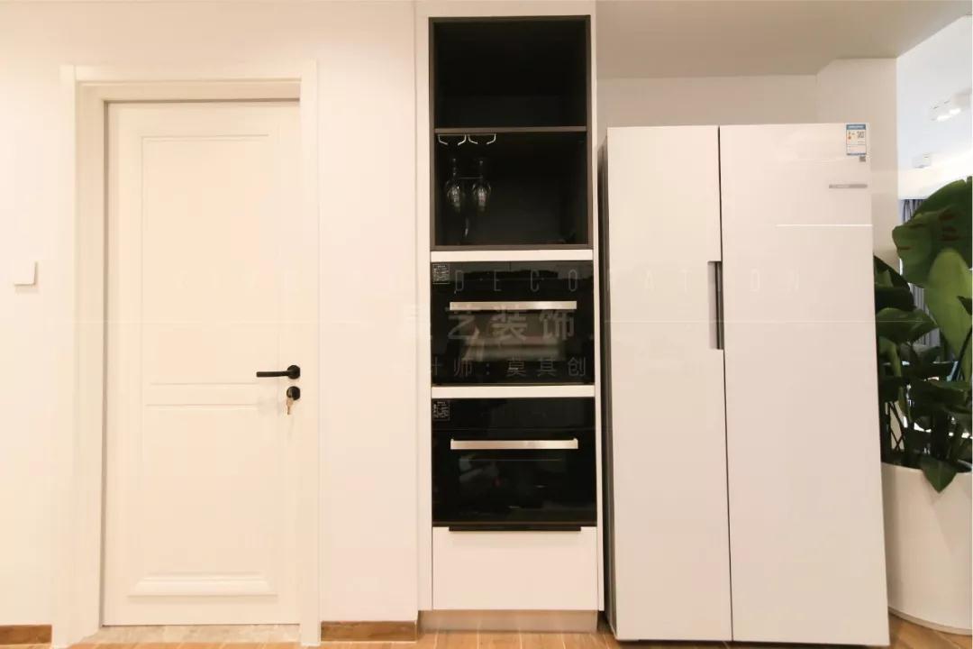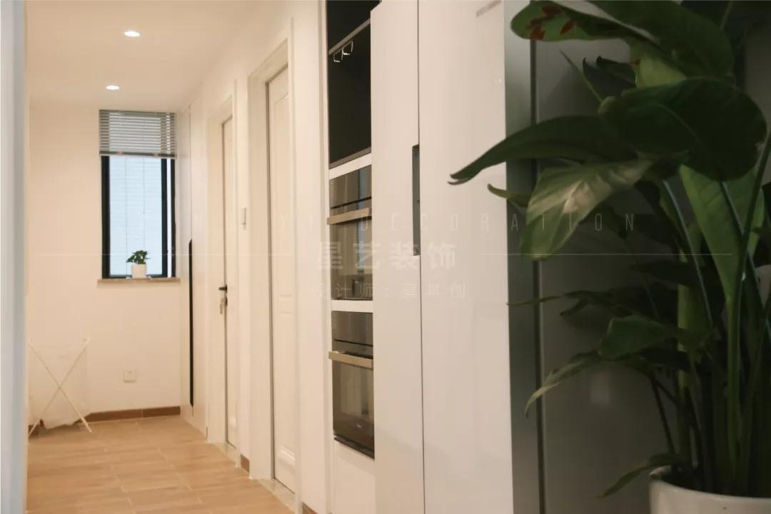 需要解決原廚房狹窄的問題,把占用一定空間的衛(wèi)生間門移到原本過(guò)道的衣帽間的衛(wèi)生間,把廚房空的操作臺(tái)擴(kuò)大,而冰箱、烤箱和紅酒柜等設(shè)計(jì)在過(guò)道上,這樣廚房的空間也通透明亮起來(lái),又解決了衛(wèi)生間門口設(shè)計(jì)的問題。