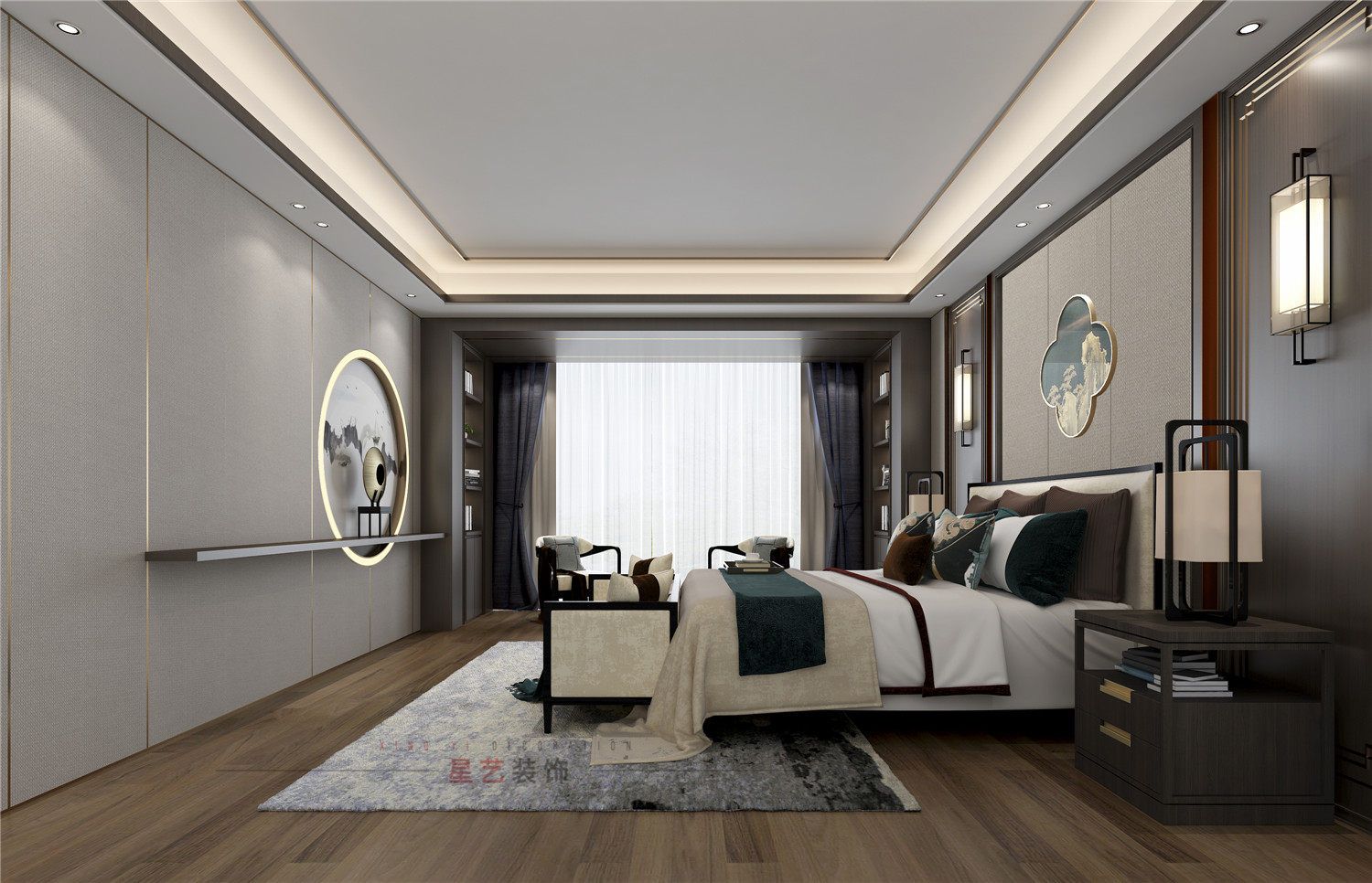臥室方面主要采用對稱方正的設計手法,每個房間都都有對應不同年齡段的風格元素,在層疊渲染之中,給人一種深邃寧靜的感官體驗。