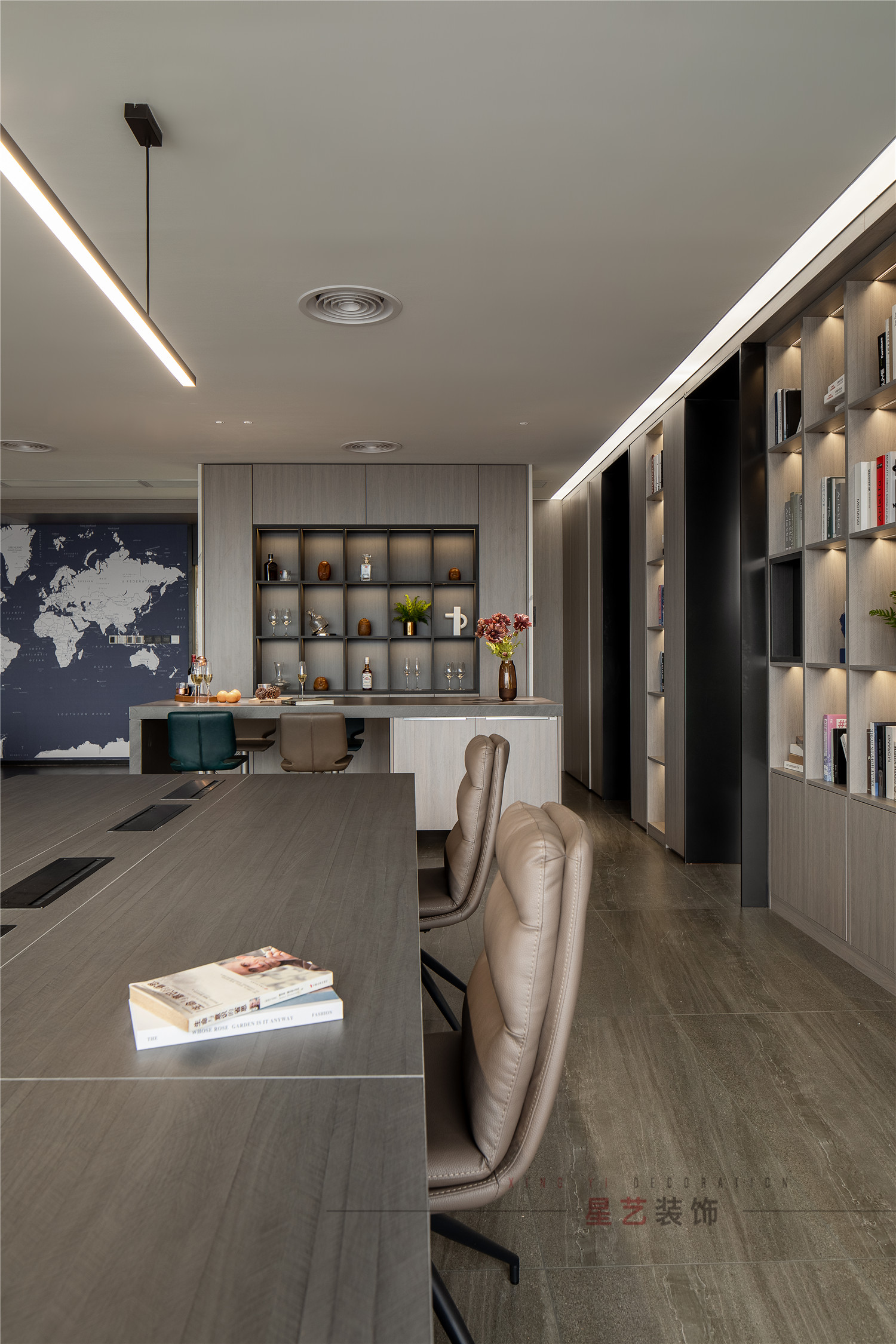 MAVEGA GROUP 是一家船舶經(jīng)紀(jì)為主營業(yè)務(wù)的英國企業(yè),中國區(qū)負(fù)責(zé)人Tiger希望給與辦公空間一個符合行業(yè)屬性的定位,時差原因辦公時間會直至深夜,整個辦公空間對于員工以及客戶的一個娛樂性、舒適性及其重要,辦公空間按照”家”的屬性要求,給予了更多的可能性。