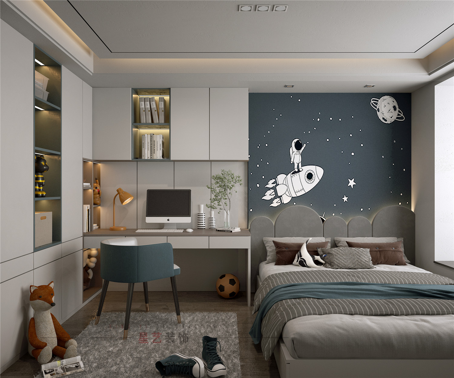 當(dāng)孩子降生到這個世上,天上就會亮起一盞燈,所以有了星星。平常給孩子多一些想象,保持天真,這也是一種超能力。小孩房添上一抹藍(lán)綠色,那是青春邁向成長的顏色。