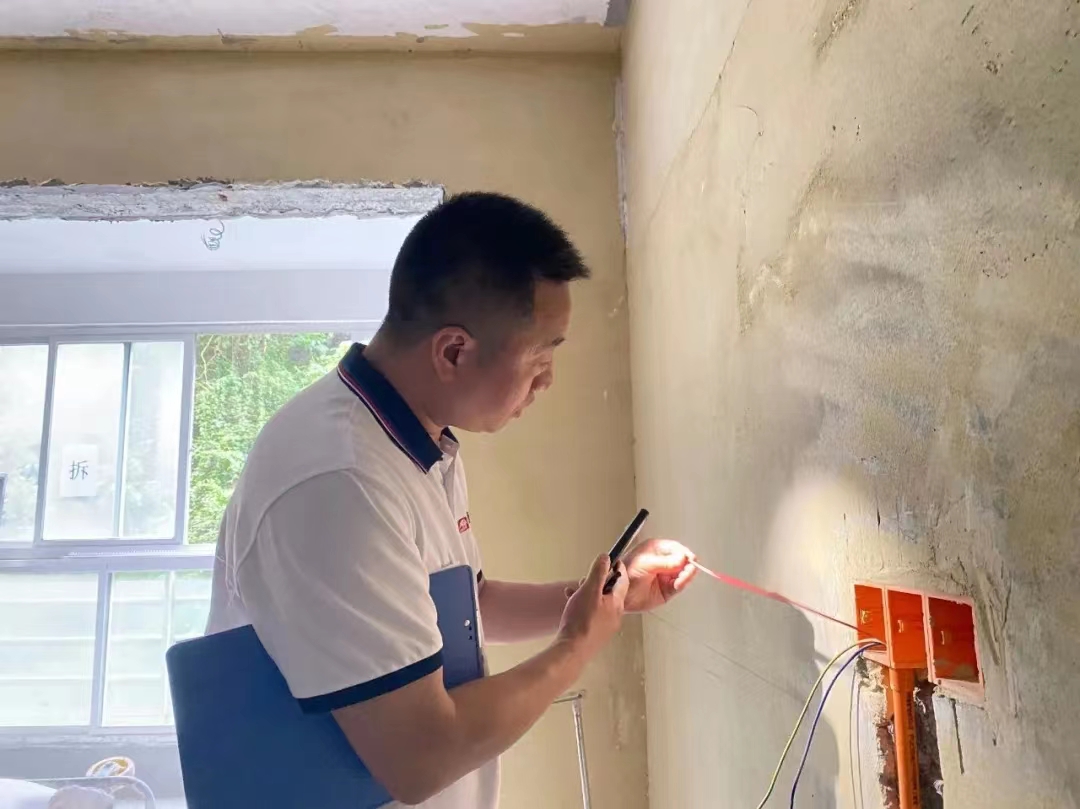 墻面平整度和水電改造查驗都是必不可少的環(huán)節(jié),線槽均勻美觀、深度適等都極為重要,墻面垂直度偏差小于3mm符合標(biāo)準(zhǔn),而一張100元人民幣約為0.1mm,非常直觀!