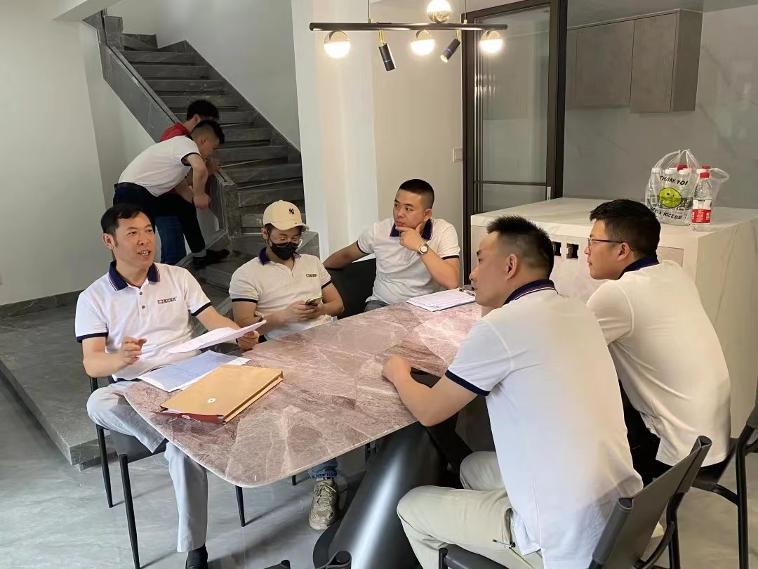 4月19日這天,星藝裝飾廣州公司總經(jīng)理柯志強,副總經(jīng)理劉亦萍,工程部監(jiān)理汪維亮,總設(shè)計師郭曉華等人同時分批帶領(lǐng)設(shè)計部和工程部的總監(jiān)對工地進(jìn)行質(zhì)量抽查;作為家裝工程的核心環(huán)節(jié),工程質(zhì)量關(guān)系到入住后的舒適度甚至安全性,此次走進(jìn)工地現(xiàn)場實地考察也給大家展示最真實的家裝細(xì)節(jié)。